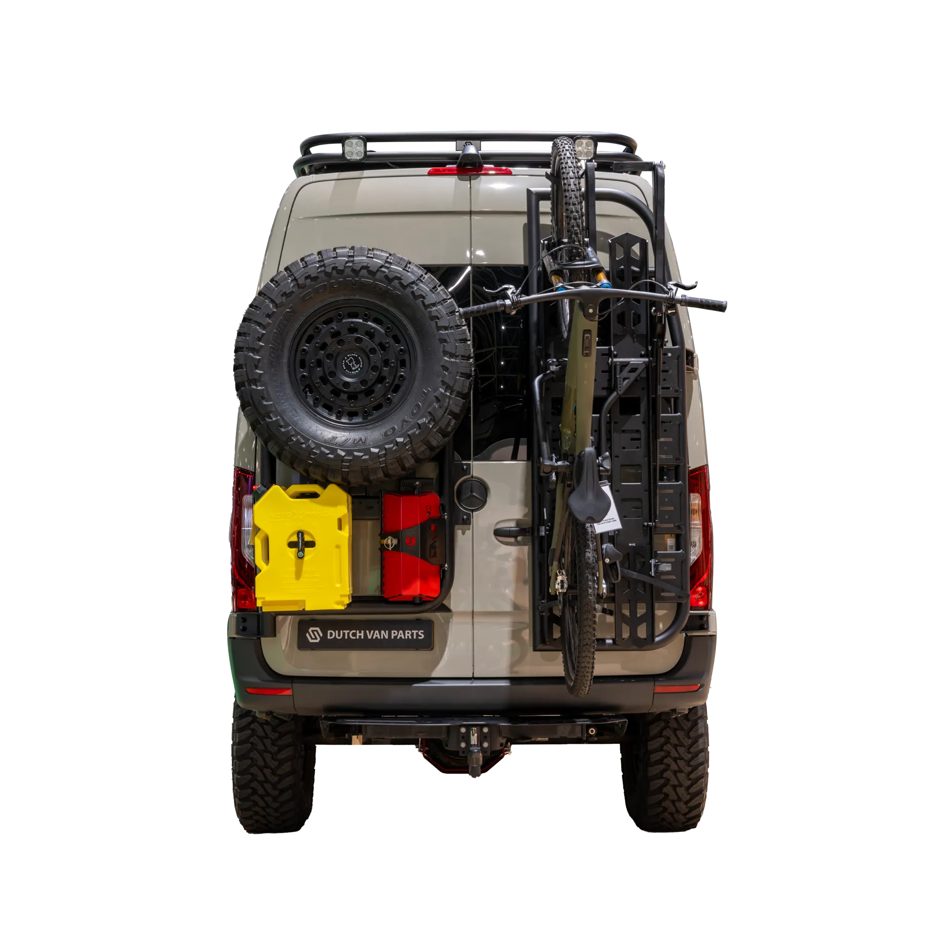 Der Backbone Träger bietet eine vielseitige Lösung, wenn du die linke Rückseite deines Sprinters für Lagerung nutzen, dein Ersatzrad transportieren oder beides kombinieren möchtest.