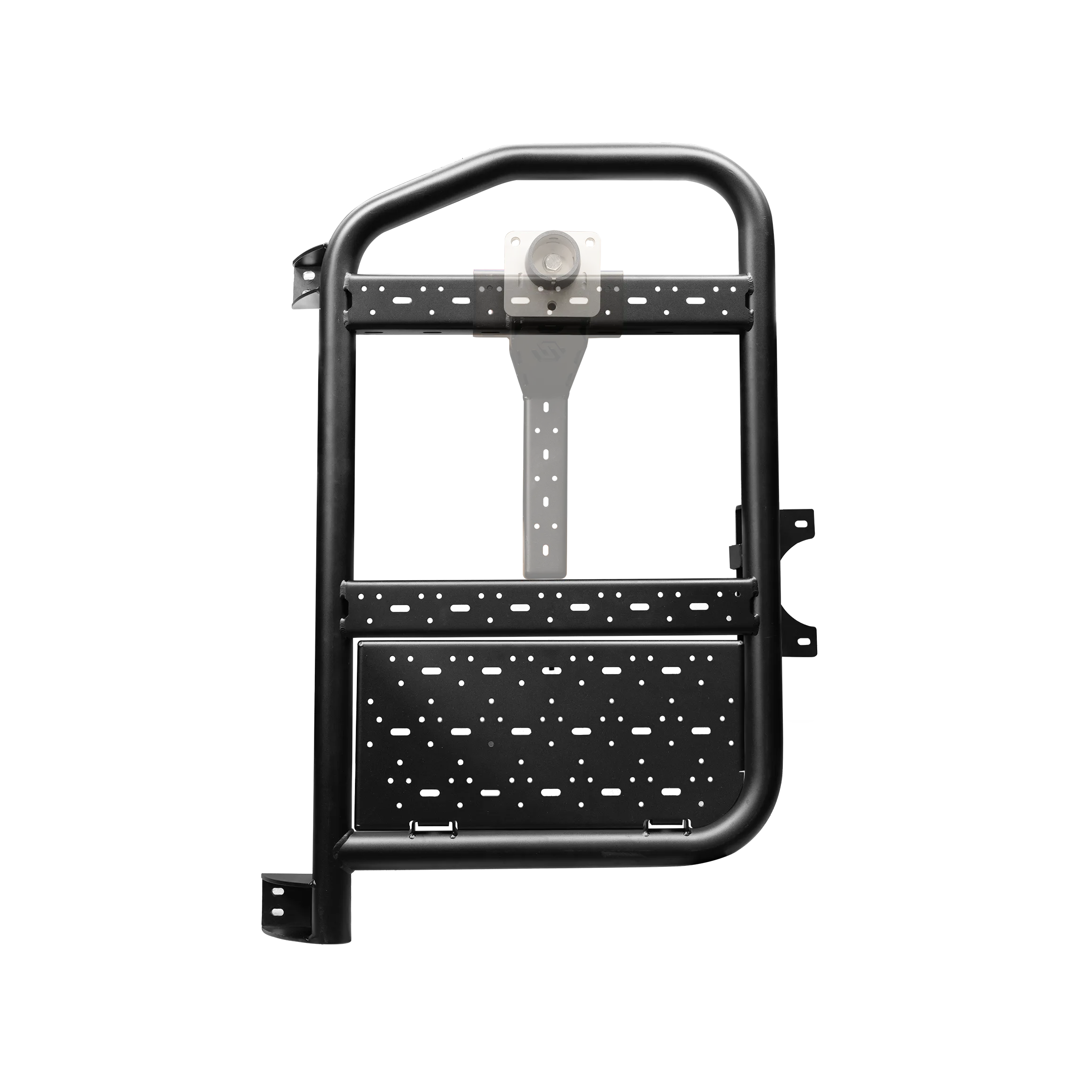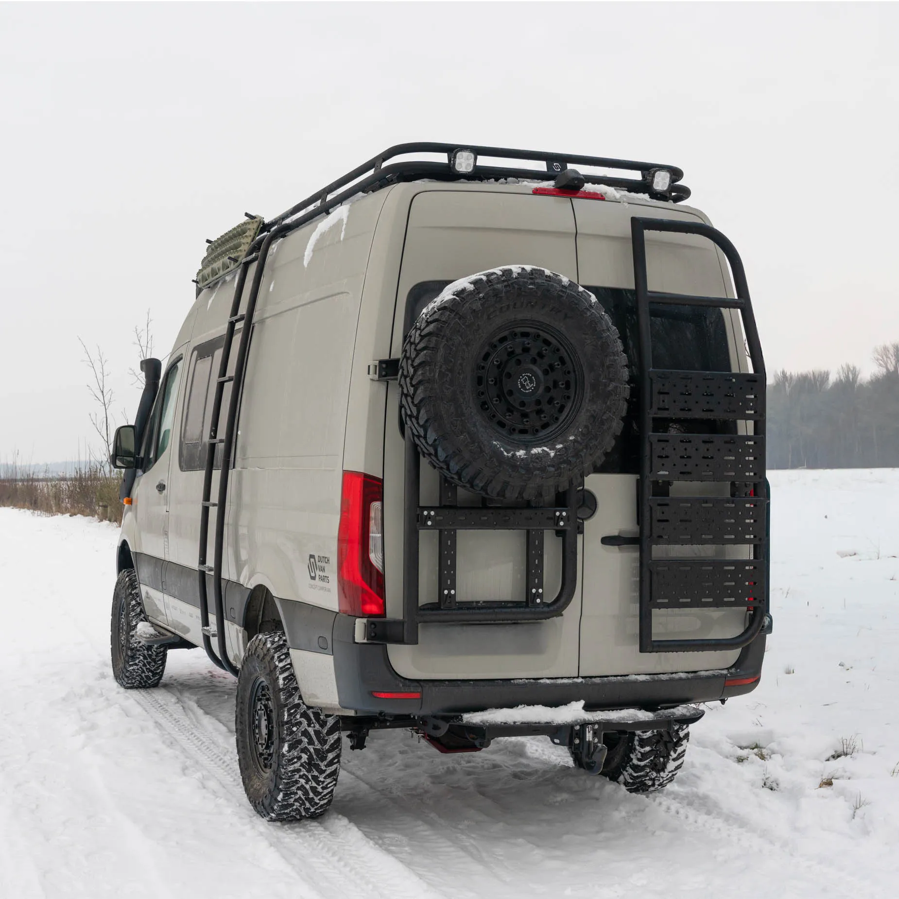 Le porte Backbone offre une solution polyvalente si vous souhaitez utiliser le côté gauche de l’arrière de votre Sprinter pour le stockage, transporter votre roue de secours ou combiner les deux.