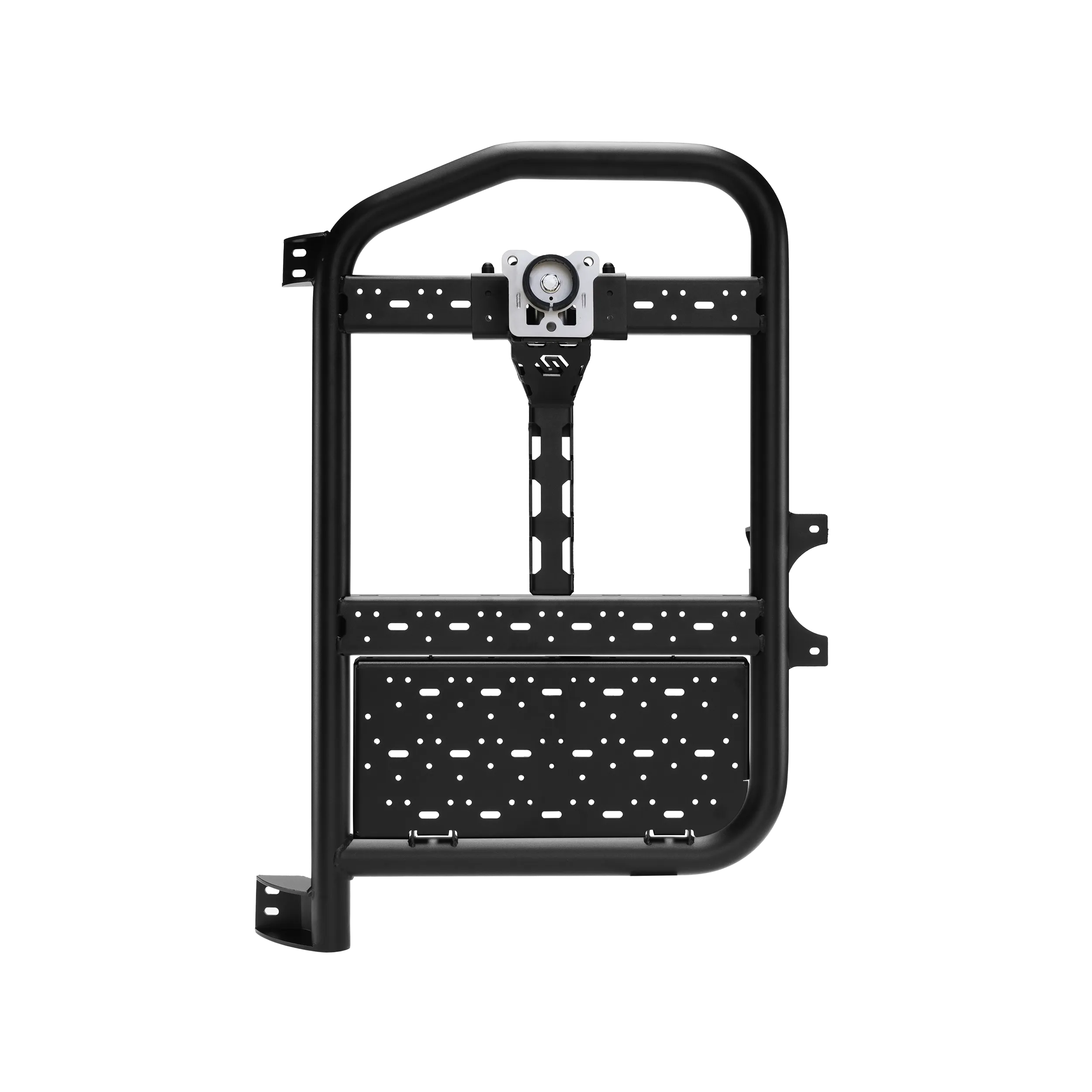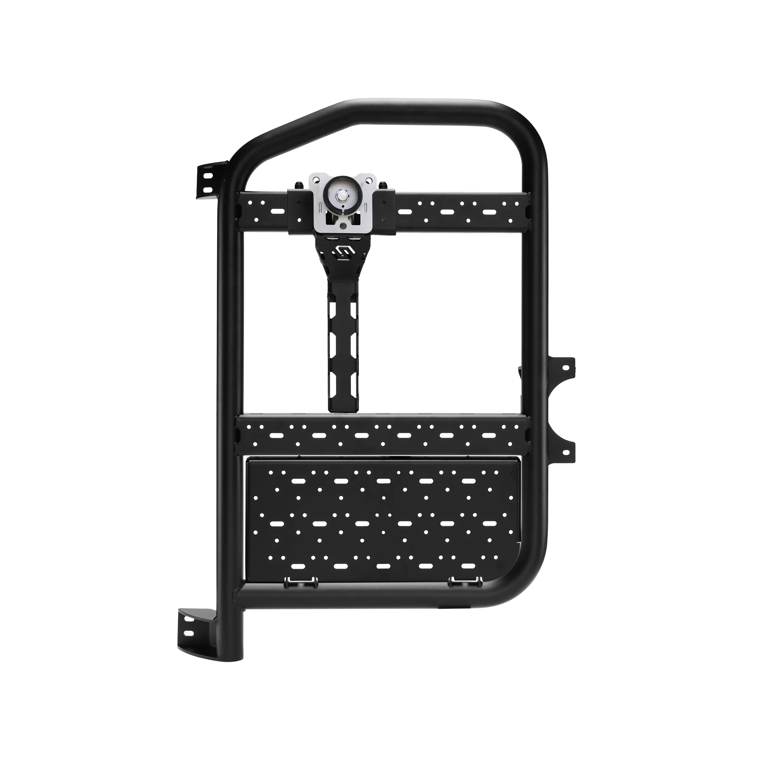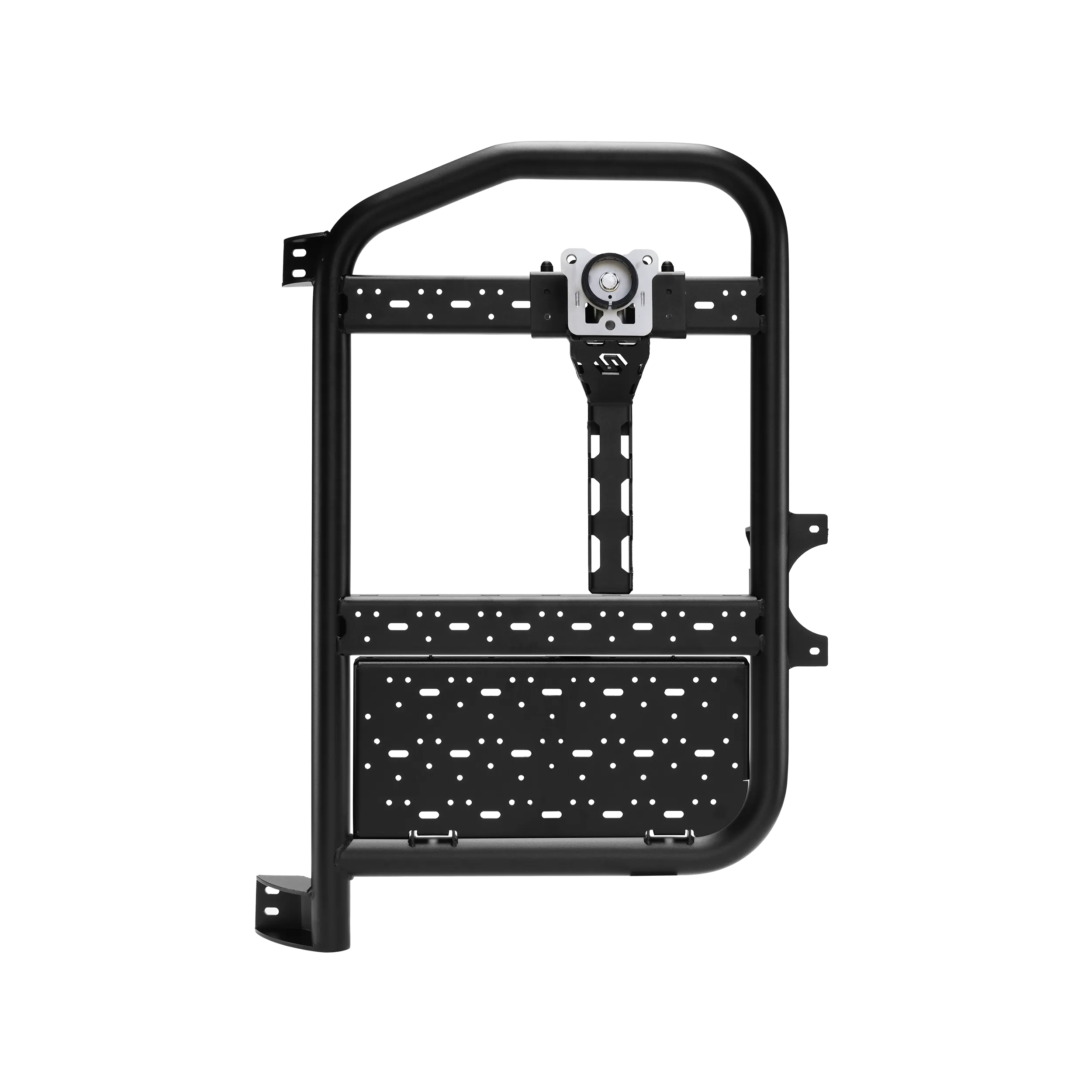 le porte Backbone pour Sprinter optimise l’espace de stockage arrière gauche de votre van. Transportez facilement roues de secours, caisses et autres accessoires.