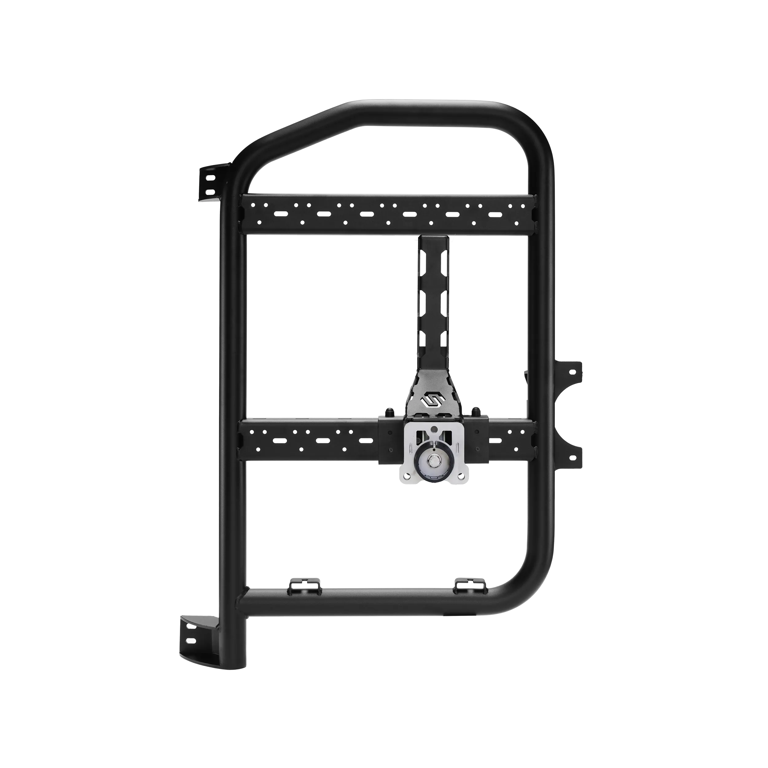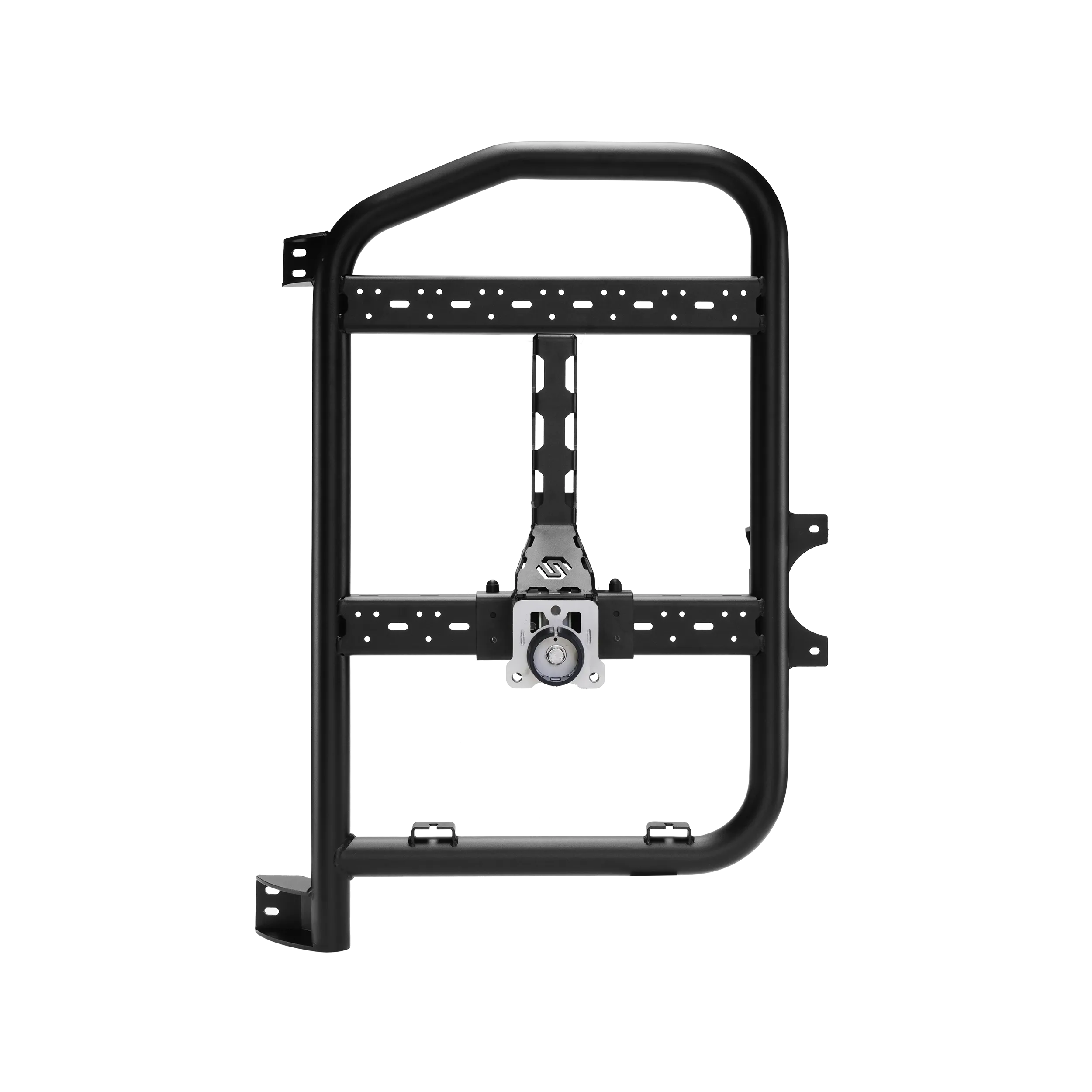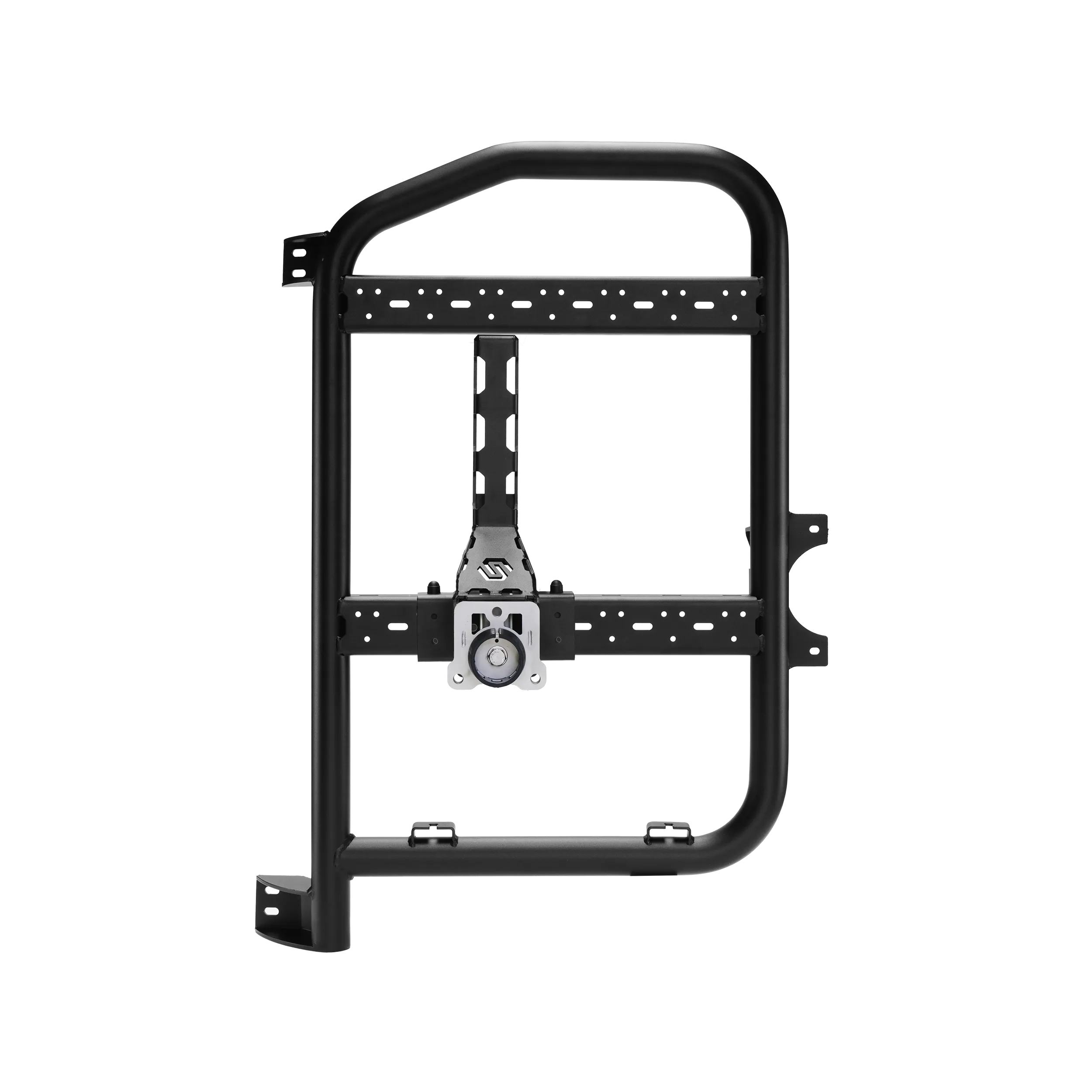 le porte Backbone pour Sprinter optimise l’espace de stockage arrière gauche de votre van. Transportez facilement roues de secours, caisses et autres accessoires.