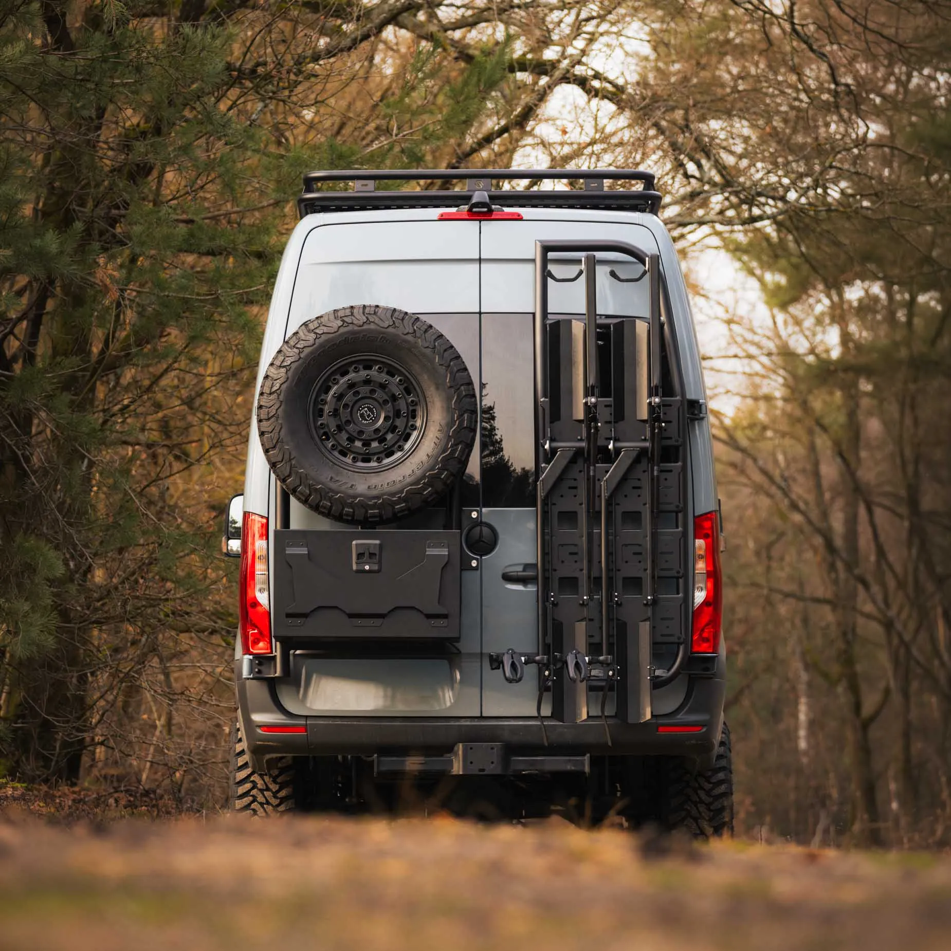 Transformeer de achterzijde van je Mercedes Sprinter tot een complete avonturenhub met het Dual Bike Backbone Pakket. Speciaal ontworpen voor outdoorliefhebbers, combineert dit systeem opslag, toegankelijkheid en fietsvervoer in één functioneel geheel.